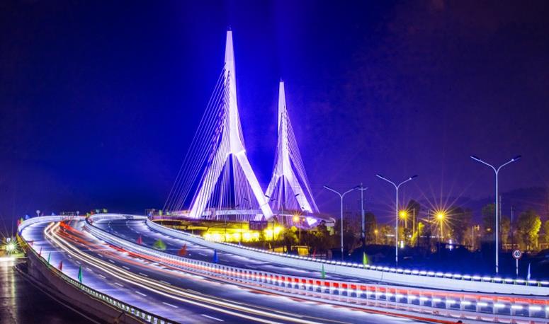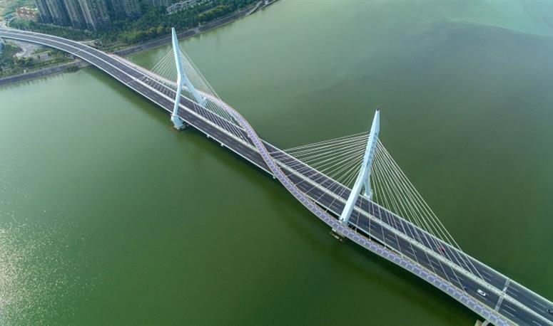 城南新區(qū)一號橋建成通車,有效地優(yōu)化和改善了綿陽南區(qū)的交通結(jié)構(gòu),極大地緩解了中心城區(qū)的交通壓力,從城東游仙區(qū)到城南新區(qū)不再繞行主城區(qū),城東到城南將縮短5公里左右的路程。大橋在人行層飛架橋面上方,形成并不規(guī)則的“S”形,為全漂浮體系,建設(shè)技術(shù)居世界領(lǐng)先地位。