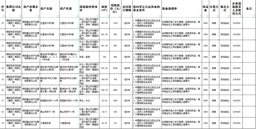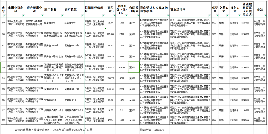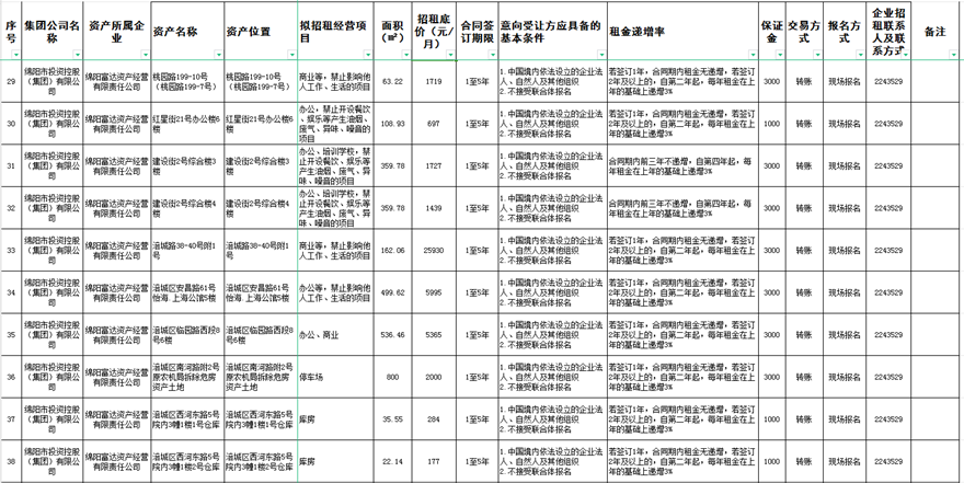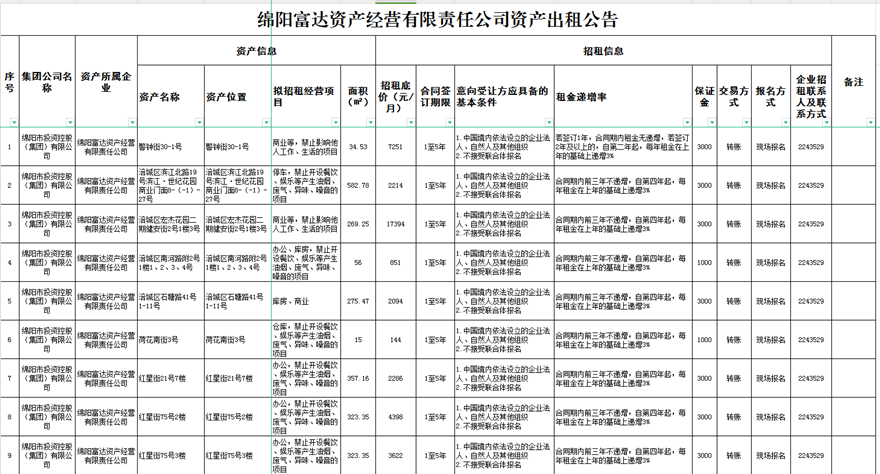 綿陽(yáng)富達(dá)資產(chǎn)經(jīng)營(yíng)有限責(zé)任公司資產(chǎn)出租公告